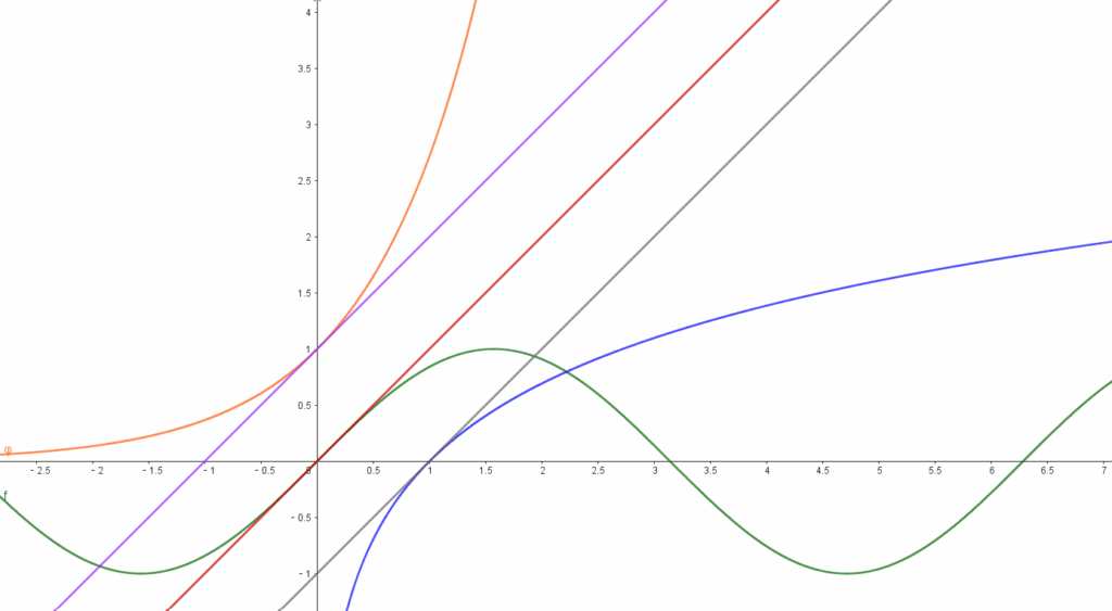 鉴于求解公切线的过程比较繁琐,我推荐记住几个特殊函数在特殊点的切线(毕竟小题很少遇到太恶心人的情况)